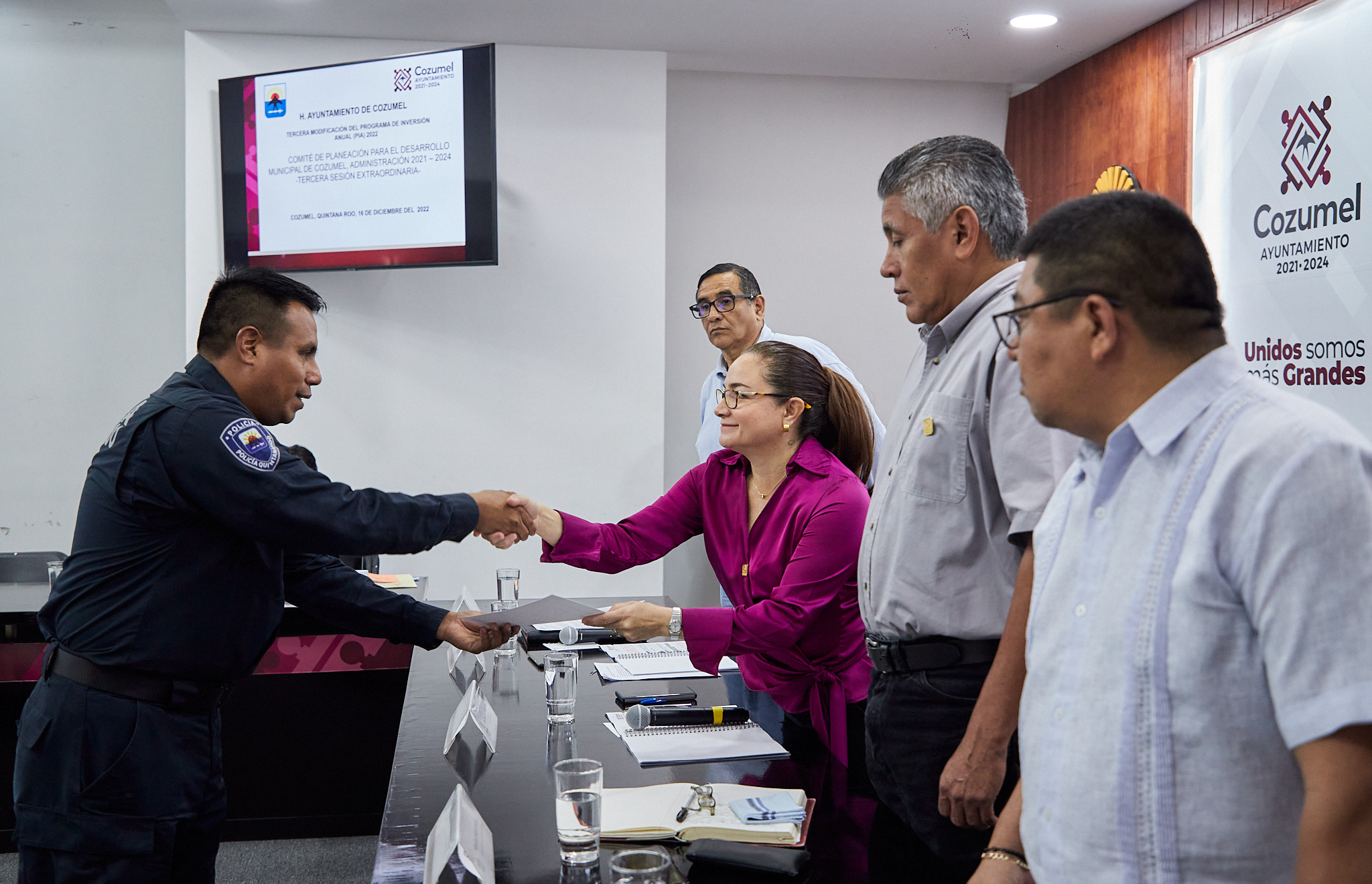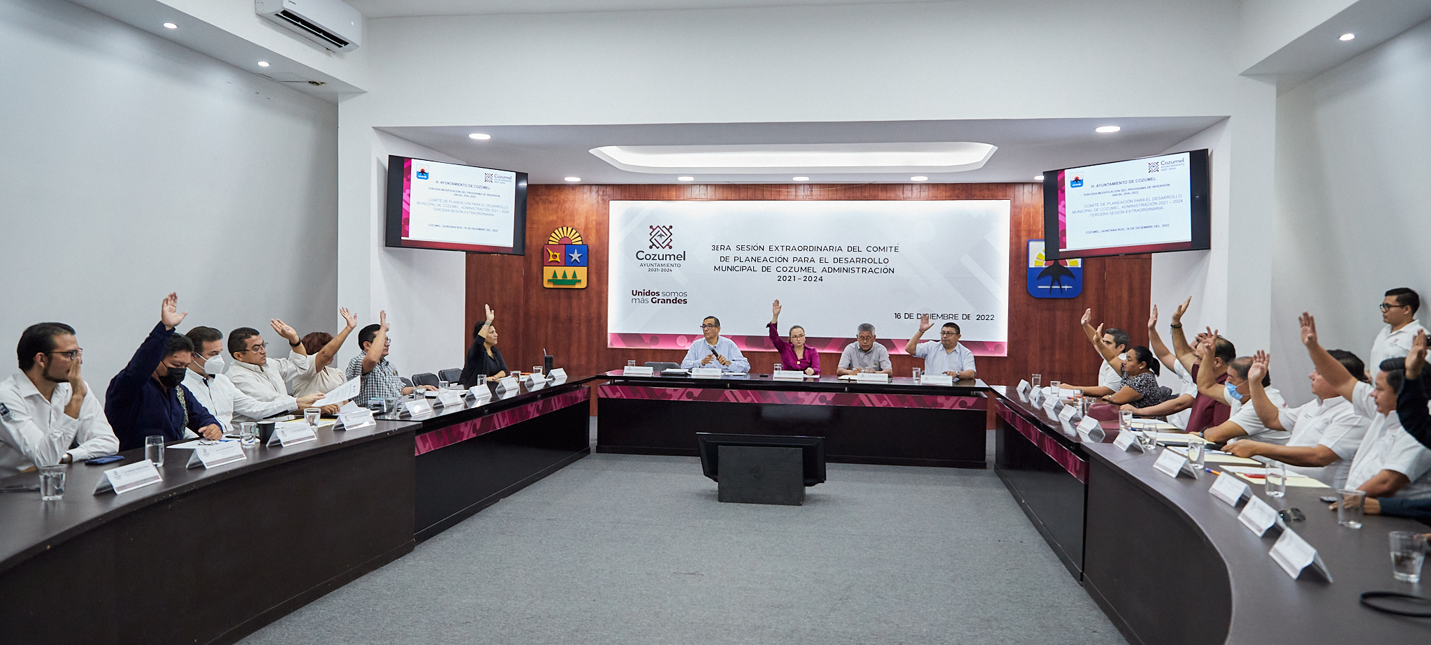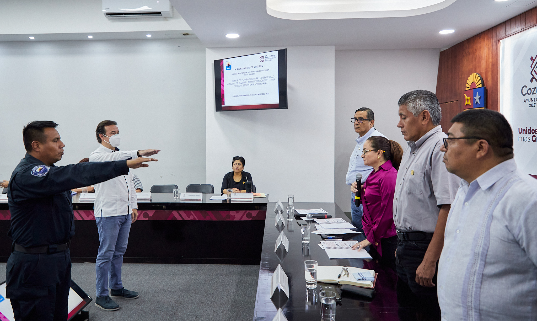 Encabeza la presidenta municipal, Juanita Alonso Marrufo la Tercera sesión extraordinaria del Comité de planeación para el desarrollo del municipio de Cozumel (Coplademun), en la que tomó protesta a los nuevos integrantes de este Comité y donde el cuerpo colegiado aprobó por mayoría la tercera modificación al Programa de Inversión Anual (PIA) del ejercicio fiscal 2022.