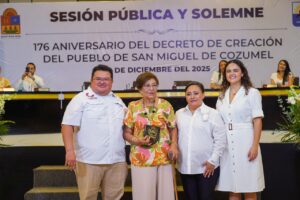 María Cristina Torres Gómez, secretaria de gobierno del Estado, en representación de la gobernadora de Quintana Roo, Mara Lezama Espinosa en su mensaje dijo: “Los galardonados de esta sesión solemne representan la esencia viva de Cozumel: tradición, arraigo, historia y un profundo orgullo por la identidad cozumeleña. Cada reconocimiento refleja el legado de hombres y mujeres que, a través del arte, la cultura, la educación, la música, la danza y las tradiciones, han construido el espíritu de la isla y preservado aquello que nos hace únicos”, expresó.