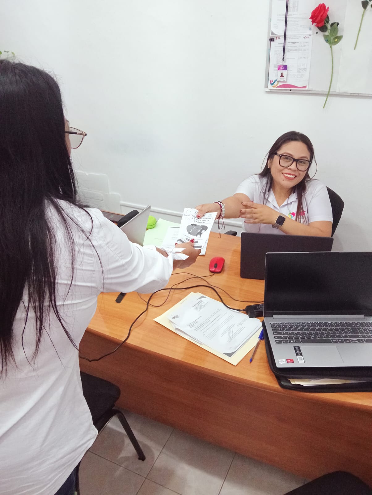 Como parte de estas actividades, se llevó a cabo la jornada informativa “Difusión de información para la prevención de la violencia laboral”, dirigida a las y los servidores públicos del municipio. El objetivo fue brindar información clara sobre qué es la violencia laboral, cómo prevenirla dentro de las unidades administrativas y a dónde acudir en caso de ser víctima. Durante la jornada, se distribuyeron más de 300 trípticos informativos al personal de diversas áreas del Ayuntamiento.