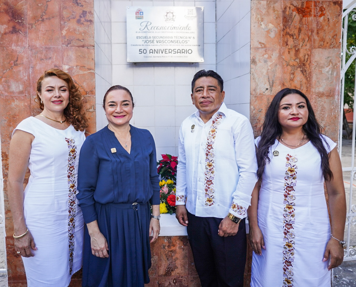 La educación de la comunidad es una prioridad para el Gobierno de Cozumel, por ello, la presidenta municipal, Juanita Alonso Marrufo asistió a la celebración por el 50 Aniversario de la escuela secundaria técnica No. 6 “José Vasconcelos”, donde en compañía de las autoridades de la instancia educativa y profesores jubilados, develó la placa conmemorativa de este medio siglo de funcionamiento en la isla.