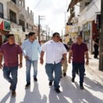 El presidente municipal, José Luis Chacón Méndez, realizó un recorrido de supervisión de obra en la entrada del estacionamiento de Plaza del Sol y en la pavimentación de la 10ª Avenida, en el tramo comprendido entre las calles Juárez y 2 Norte, acompañado por Andrés Catzim, director de Obras Públicas, así como por Elías Farah, director de Turismo y Héctor Martínez, director de Obras Públicas, con el objetivo de constatar el avance de los trabajos que buscan mejorar la movilidad y la imagen urbana de esta importante zona comercial y turística de la isla.