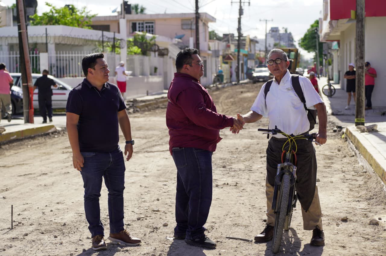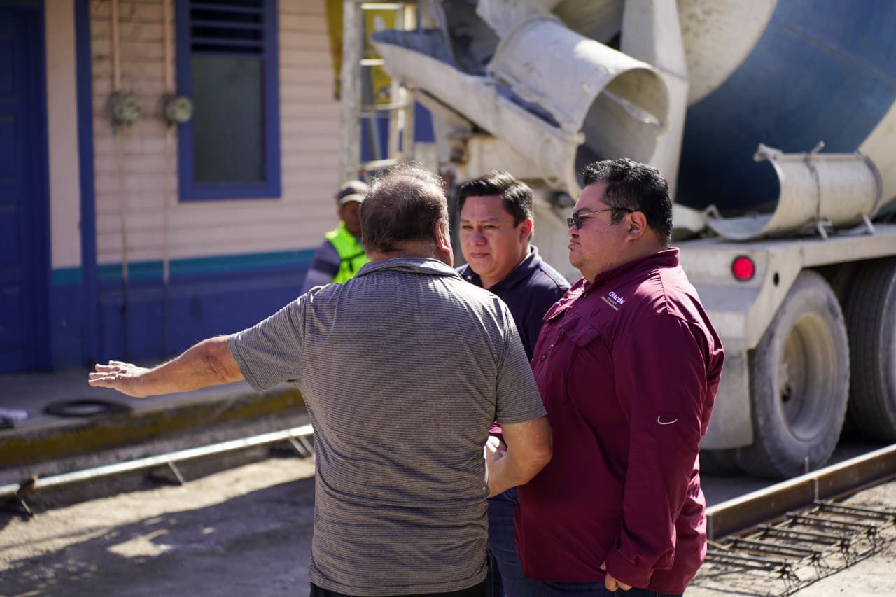 El presidente municipal, José Luis Chacón Méndez, acompañado del director de Obras Públicas, Andrés Catzim Gómez, realizó un recorrido de supervisión por el inicio del vertido de concreto hidráulico en la 10ª Avenida, entre Adolfo Rosado Salas y 3 Sur, como parte de la segunda etapa de la histórica obra de pavimentación en la zona centro de la isla.